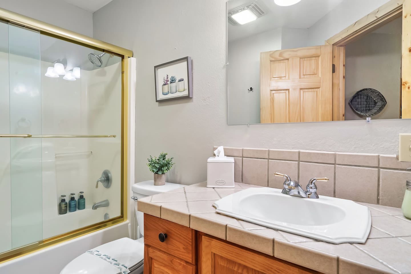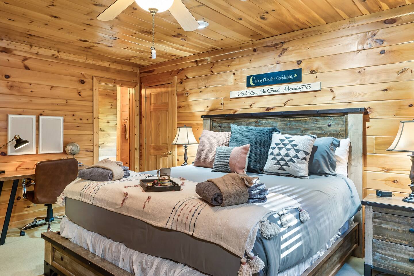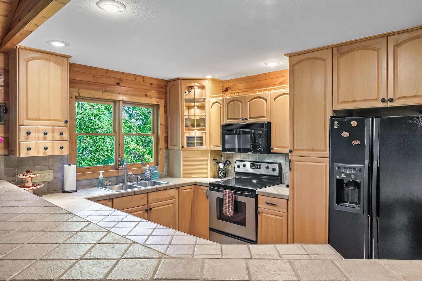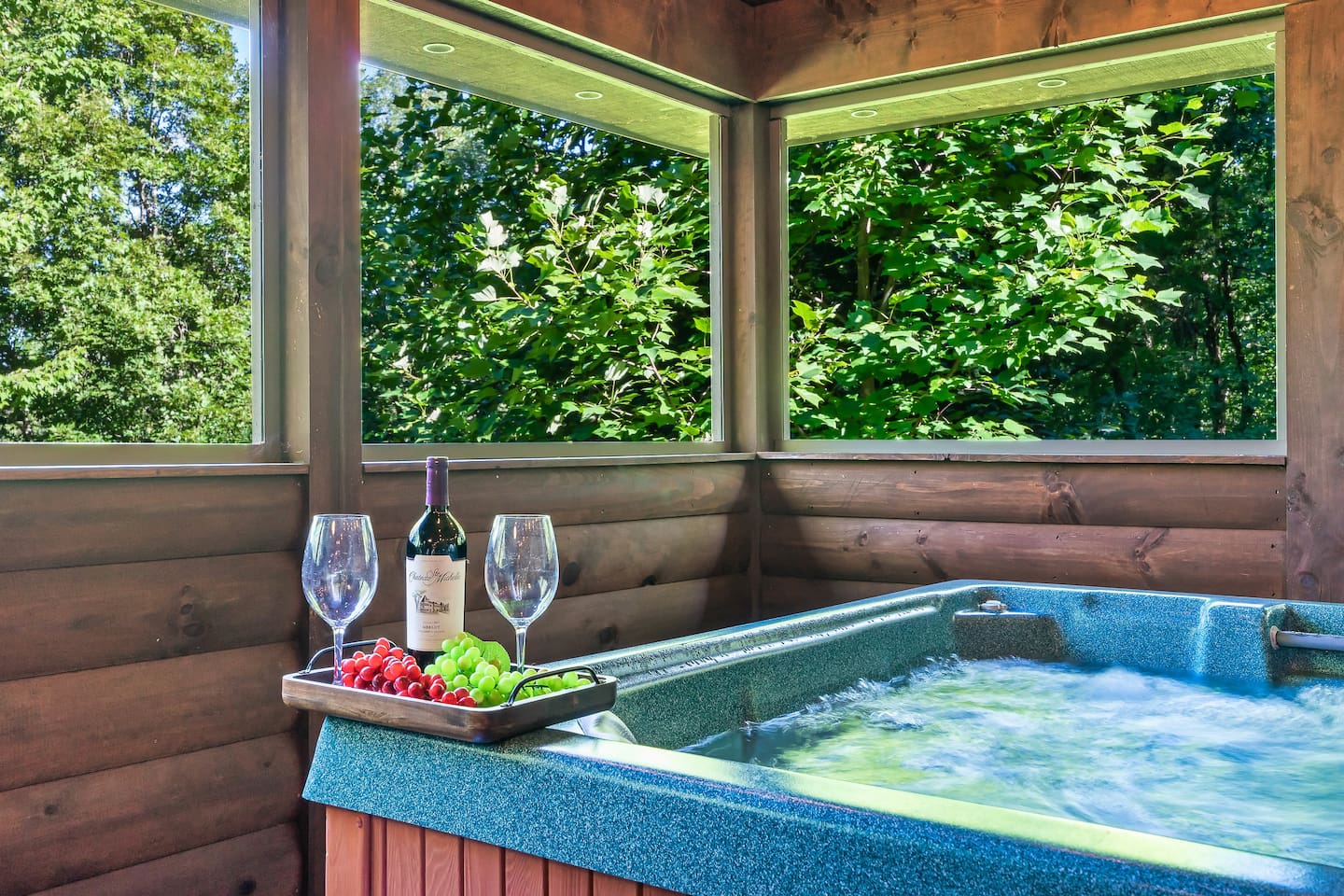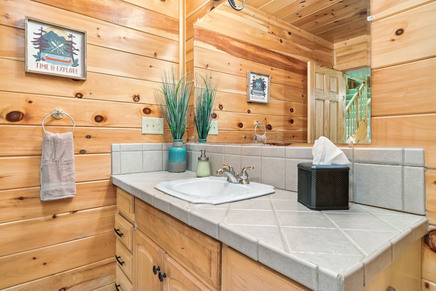 Nestled high among the lush canopy, our cabin offers charm and modern comfort on a gorgeous setting ➤ 4 Bedroom ⎮ 4 Bath ⎮ 2800 ft² ➤ Private hot tub w/ TV ➤ Indoor/outdoor dining ➤ Outdoor movies! ➤ Videogame arcade ➤ Ping Pong ➤ Foosball ➤ Gorgeous covered deck + 180° forest views ➤ Gas grill ➤ Onsite 4 vehicle parking ➤ Gated/guarded community ➤ Onsite washer + dryer ➤ Nearby trails, seasonal pool, sport courts, playground, disc golf, putting green, +more 🚙 15min to the Parkway