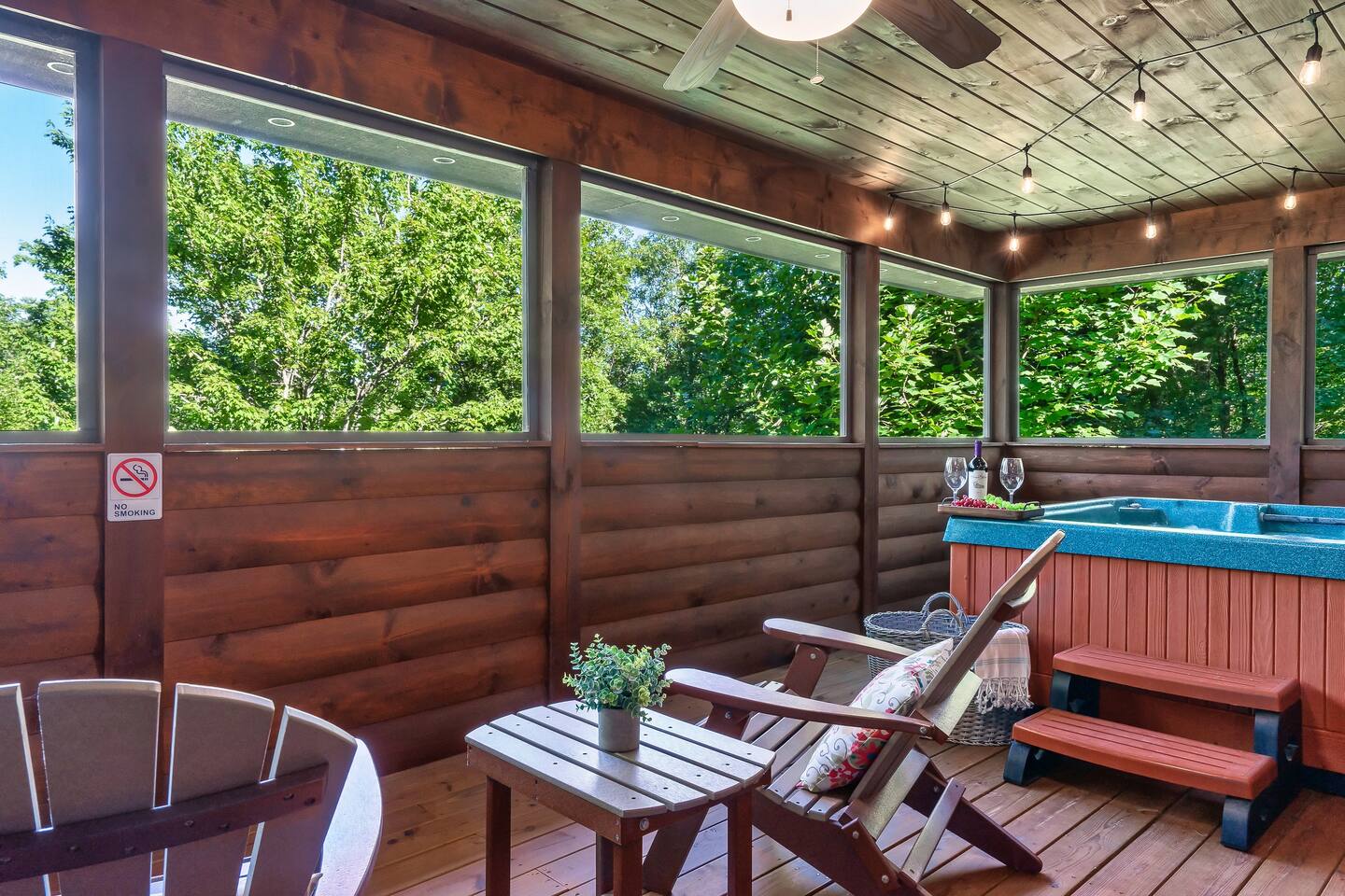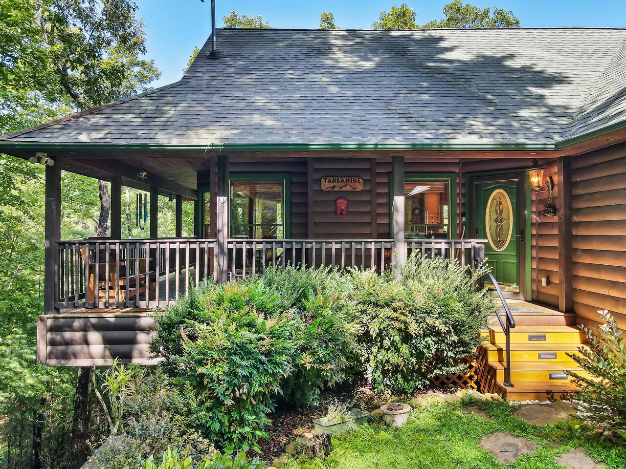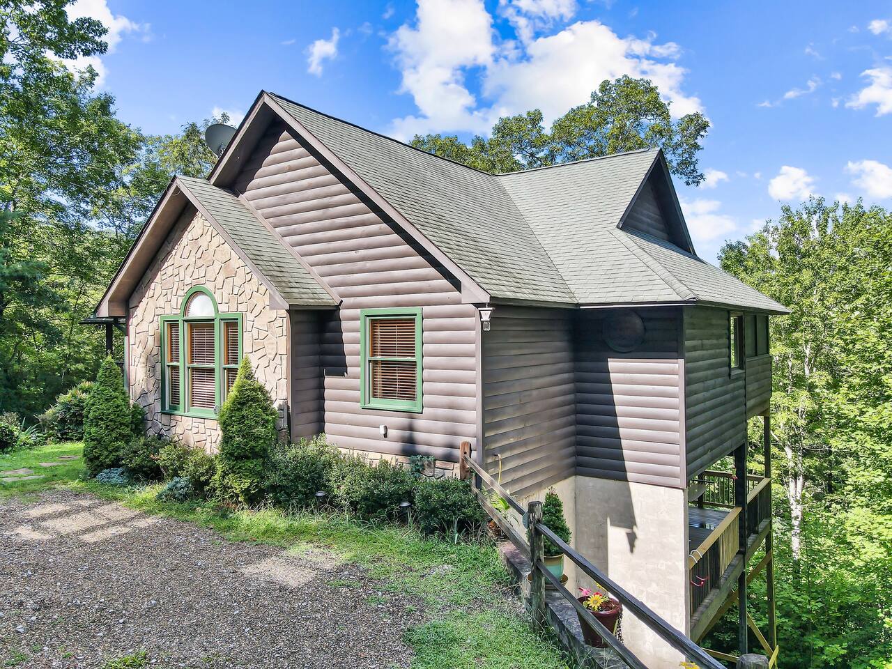 Beautiful spacious lodge, with the privacy you want in a mountain retreat. Home is on three levels, with two bedrooms on main. Main level also has a screened in deck with a private hot tub and lounging area. Second level boasts a large game room with a video game arcade and a foosball table, full bathroom, and the most gorgeous covered deck we've seen in the area. Plenty of room for relaxing, playing games or bear watching. Third level is a 2 bedroom and bath. Layout is perfect for privacy and room to spread out. Gourmet kitchen with wall of windows letting nature into the room! Room for up to 4 cars to park on level drive in front of house.