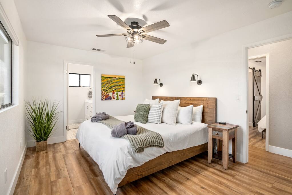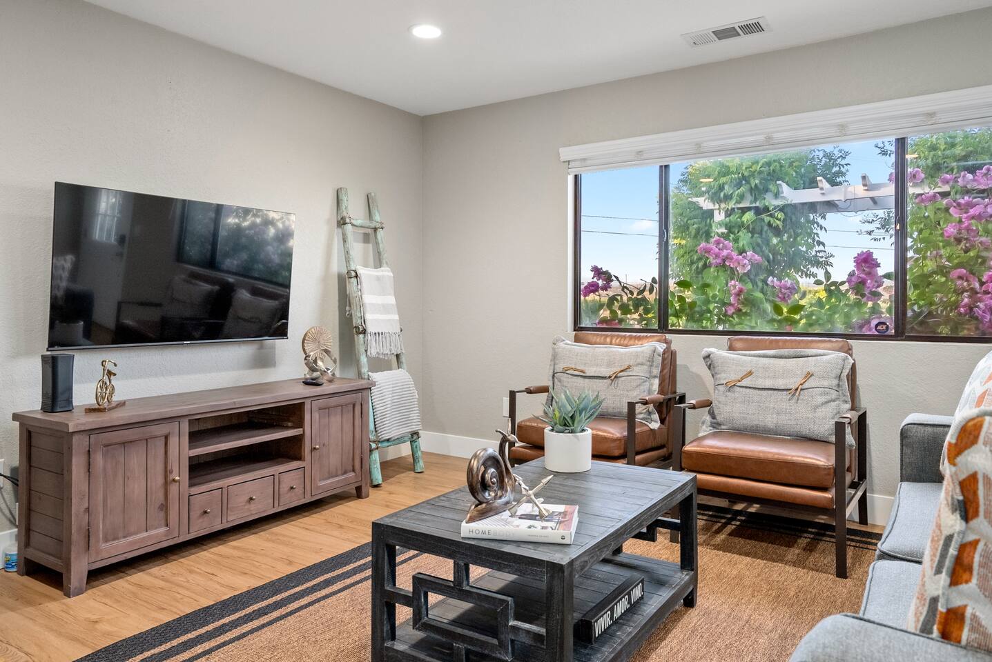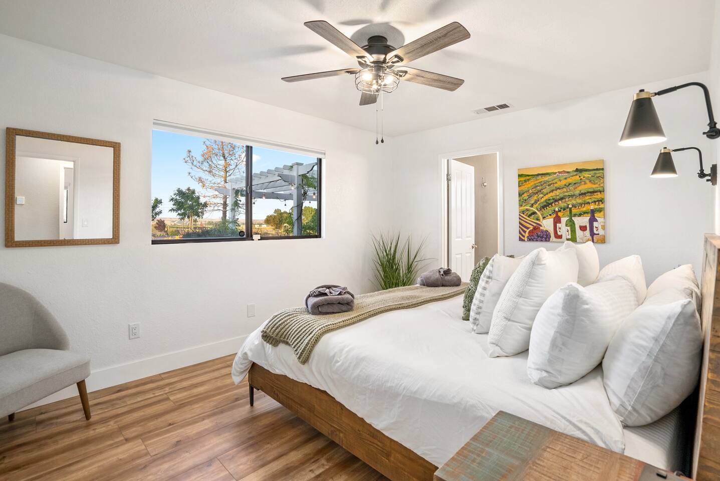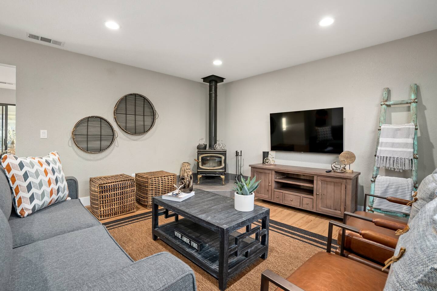 Escape to our serene countryside villa in Paso Robles right at the foot of the Pleasant Valley Wine Trail. Indulge in stunning vineyard views as you relax by the private pool and enjoy a friendly game of ping pong or bocce. The outdoor kitchen is perfect for al fresco dining. Immerse yourself in the beauty of nature, sip local wines, and experience true tranquility. Your perfect getaway awaits!